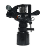 Modelo Setorial de 3/4 com rosca fêmea. Pressão de Serviço: 20 a 35 mca. Vazão: 0,609 a 0,803 m³/h. Diâmetro de Alcance: 24,8 a 25,2 mts. Produto fabricado com formulação de material plástico (Poliacetal) o qual assegura boa performance sob severas condições de trabalho, através de características de fabricação como: Resistência à fadiga. Resistência à fissuração ou pressão. Resistência à temperatura em contínuo. Resistência ao desgaste e baixo coeficiente de atrito. Nota: Não utilizar nenhum lubrificante no sistema de eixo. Caso haja necessidade, desmontá-lo e efetuar a limpeza com água limpa. Nos primeiros acionamentos do aspersor, utilizar pressões moderadas para o assentamento das arruelas. Ao armazenar por longo tempo após o uso, efetuar a limpeza dos bocais com a remoção dos mesmos.
