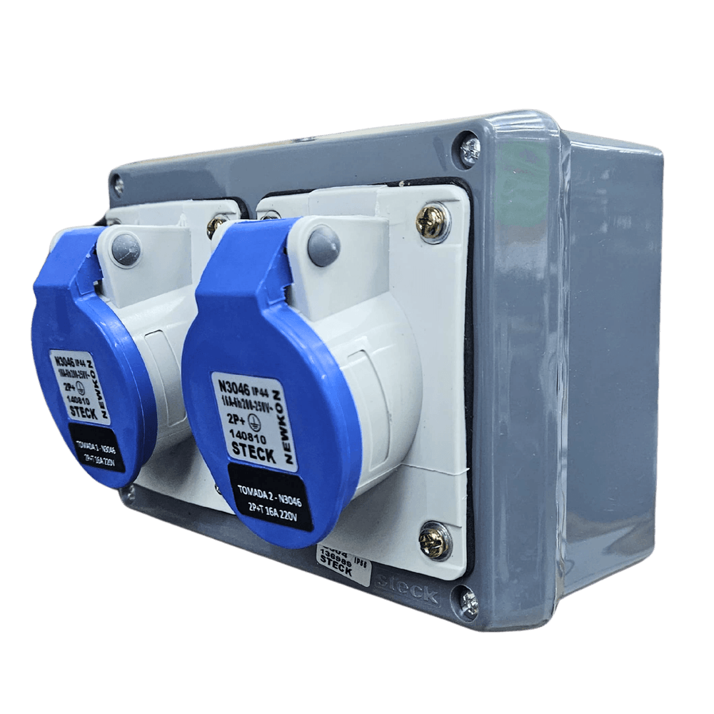Quadro Sobrepor C/ Tomada Industrial 2xN3046 2xN4049 IP-44 Cód. S231112 – Steck